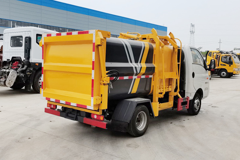 側裝式壓縮垃圾車屬于自裝卸式垃圾車的一種,采用側提桶上料方式進行生活垃圾收集,采用推板推擠或自卸式進行卸料。主要結構:汽車底盤、垃圾廂體、底架、側提桶機構、后門總成、推板總成、液壓系統和電控系統。液壓及電控系統由油泵、油缸、油箱、電液**閥、PLC和**開關等組成。同時本車自重輕,箱體為圓弧形,容積大,同等車型中裝載量**,并且美觀大方。