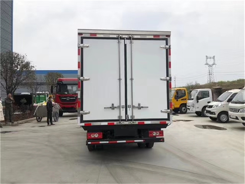 (2)廂板材質:內外壁板選用國內優質玻璃鋼(不吸光、隔熱性好、硬度強、抗氧化);中間保溫層為XPS擠塑聚笨板;廂體厚度8CM。地板采用鋁花紋板,門邊條采用迷宮式橡膠密封條。